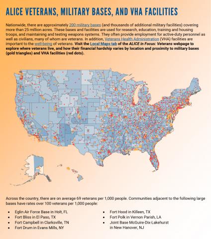 Despite public and private programs that support veterans in areas such as employment, housing, access to health services, education, and public transportation, some veterans still lack access to basic resources. This is especially true for veterans with disabilities or mental health issues who need accessible services. Veterans below the ALICE Threshold are more likely to lack access to stable housing, health insurance, and reliable technology. At the same time, many veterans who struggle to afford the basics are not eligible for public assistance programs. When these household necessities are at risk, there are both short- and long-term cumulative consequences.